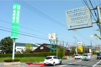 (1)福井方面から嶺北縦貫道路(県道29号線)を北上し、頭上、福井県工業技術センターさんの看板を左折してください。(※注意※ 現在福邦銀行さんの看板はなくなっております。)