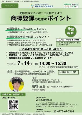 【終了しました】7/14 「商標登録のためのポイント」セミナーのご案内(リアル・オンライン併用)
