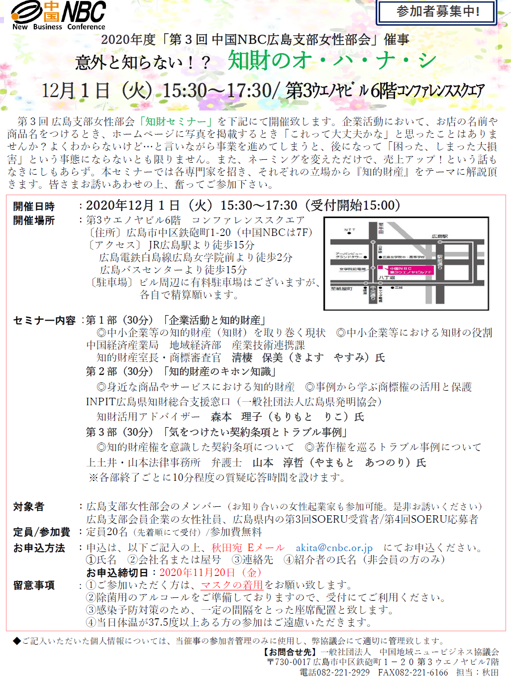 【セミナー】意外と知らない!?知財のオ・ハ・ナ・シ(12/1)