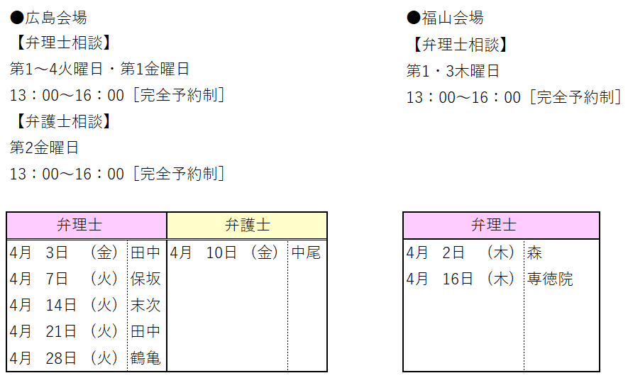 2020年度 弁理士・弁護士対応日(4月)