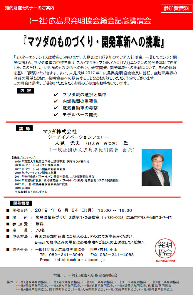 【講演会】マツダのものづくり・開発革新への挑戦(6/24)