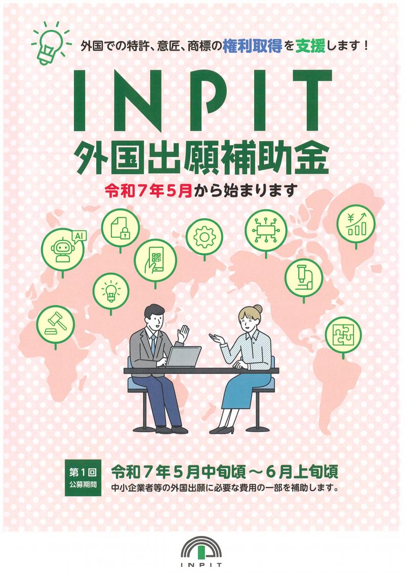 本補助金の詳細は、今後INPITホームページにてお知らせします。