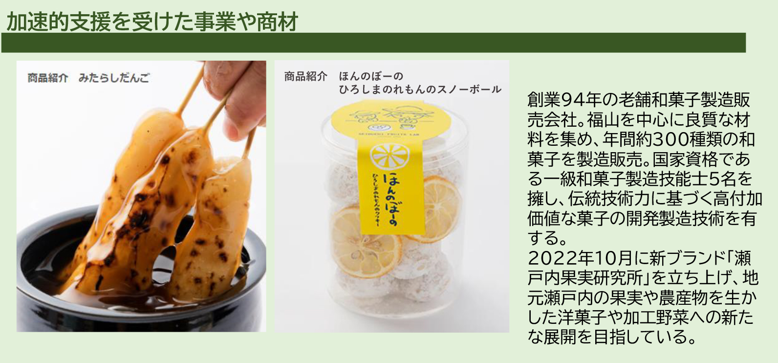 2022年10月に新ブランド「瀬戸内果実研究所」を立ち上げ、地元瀬戸内の果実や農産物を生かした洋菓子や加工野菜への新たな展開を目指していらっしゃいます。