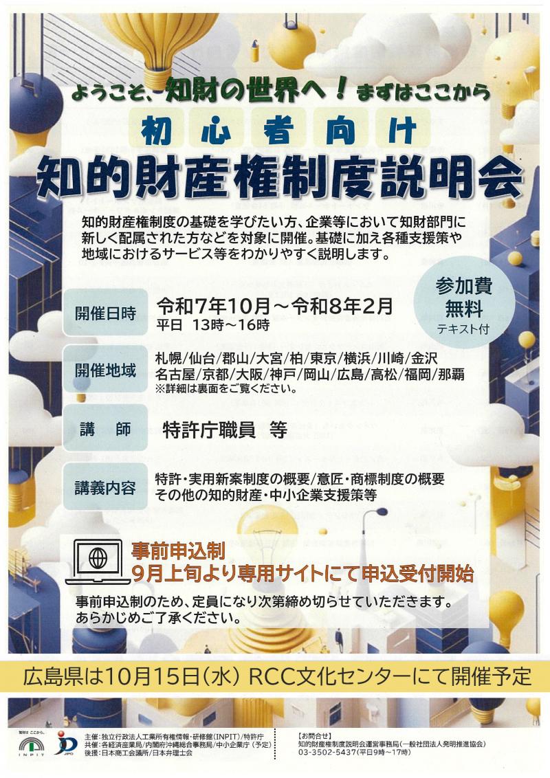 10/15広島開催 知的財産権制度説明会(参加無料)