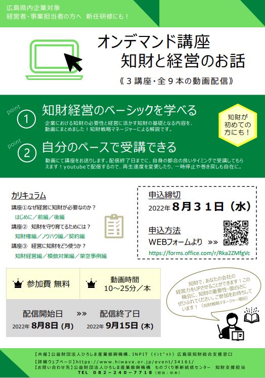 【オンデマンド講座】知財と経営のお話 ≪3講座・全9本の動画配信≫