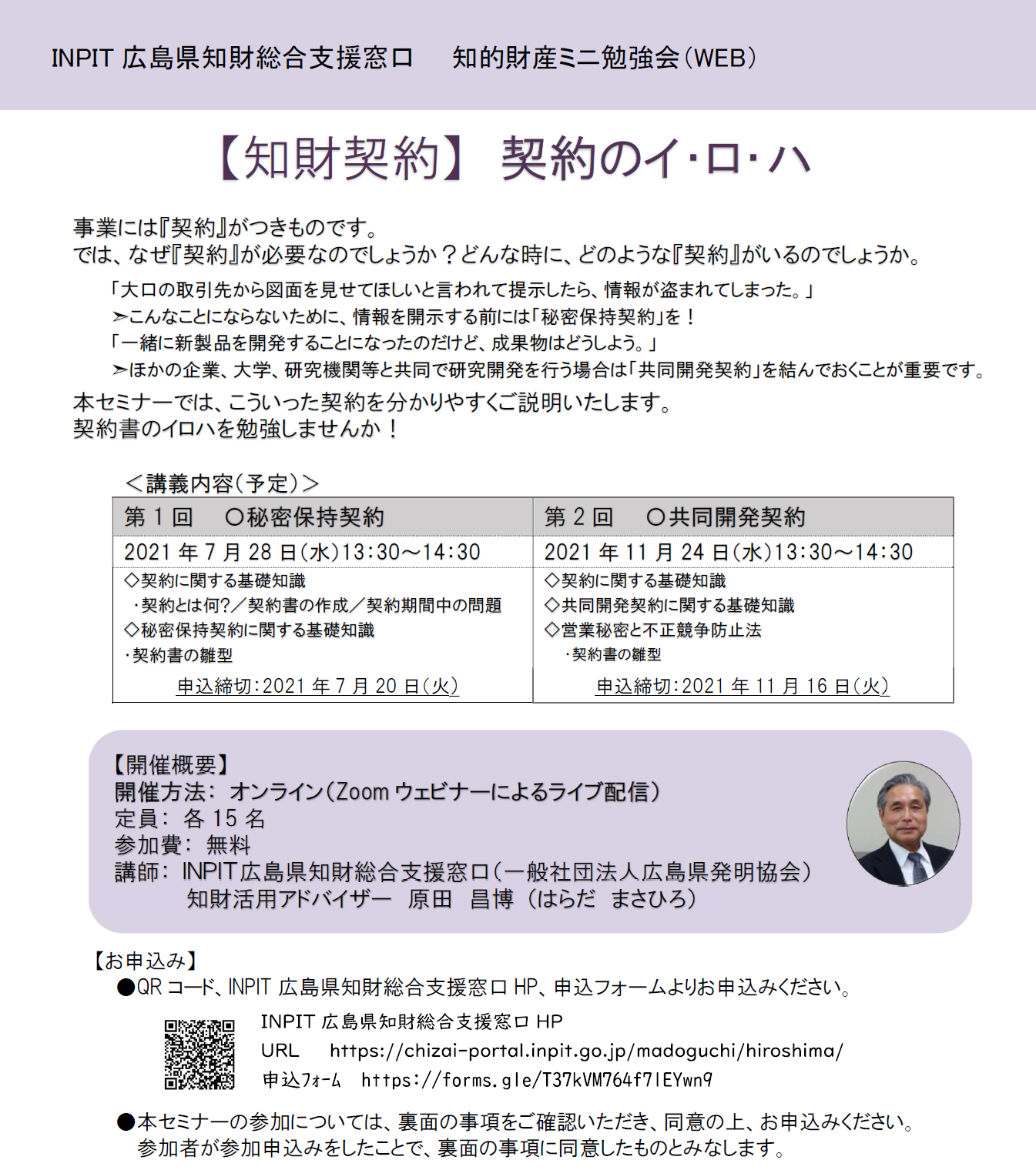 【ミニ勉強会】知財契約 契約のイ・ロ・ハ(7/28、11/24開催予定)