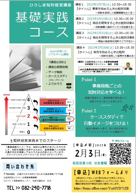 【ひろしま産業振興機構】(オンライン講座)ひろしま知財経営講座:基礎実践コースのご案内<2/7スタート>