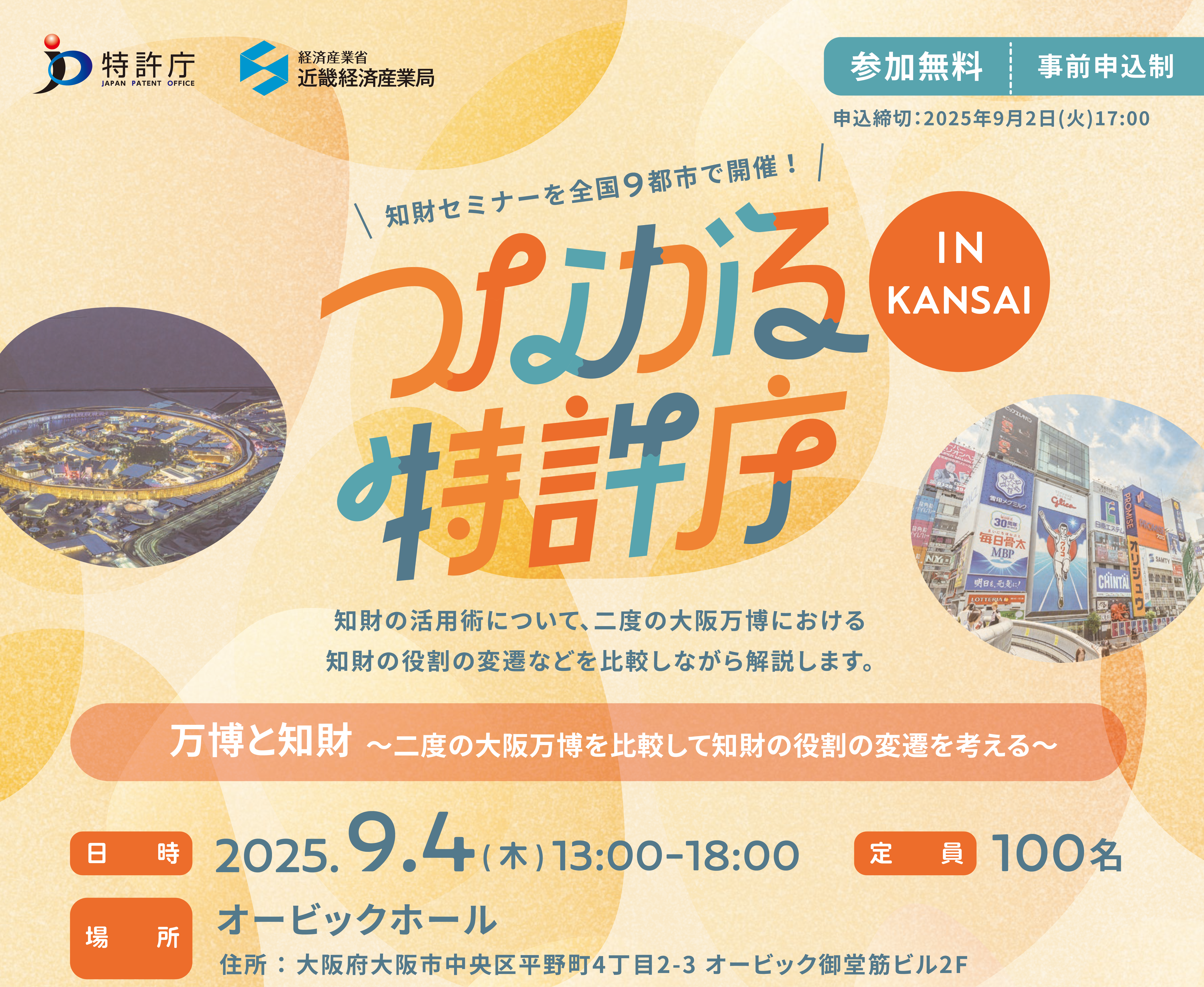 つながる特許庁 IN KANSAI 9/4の申込みが開始されました