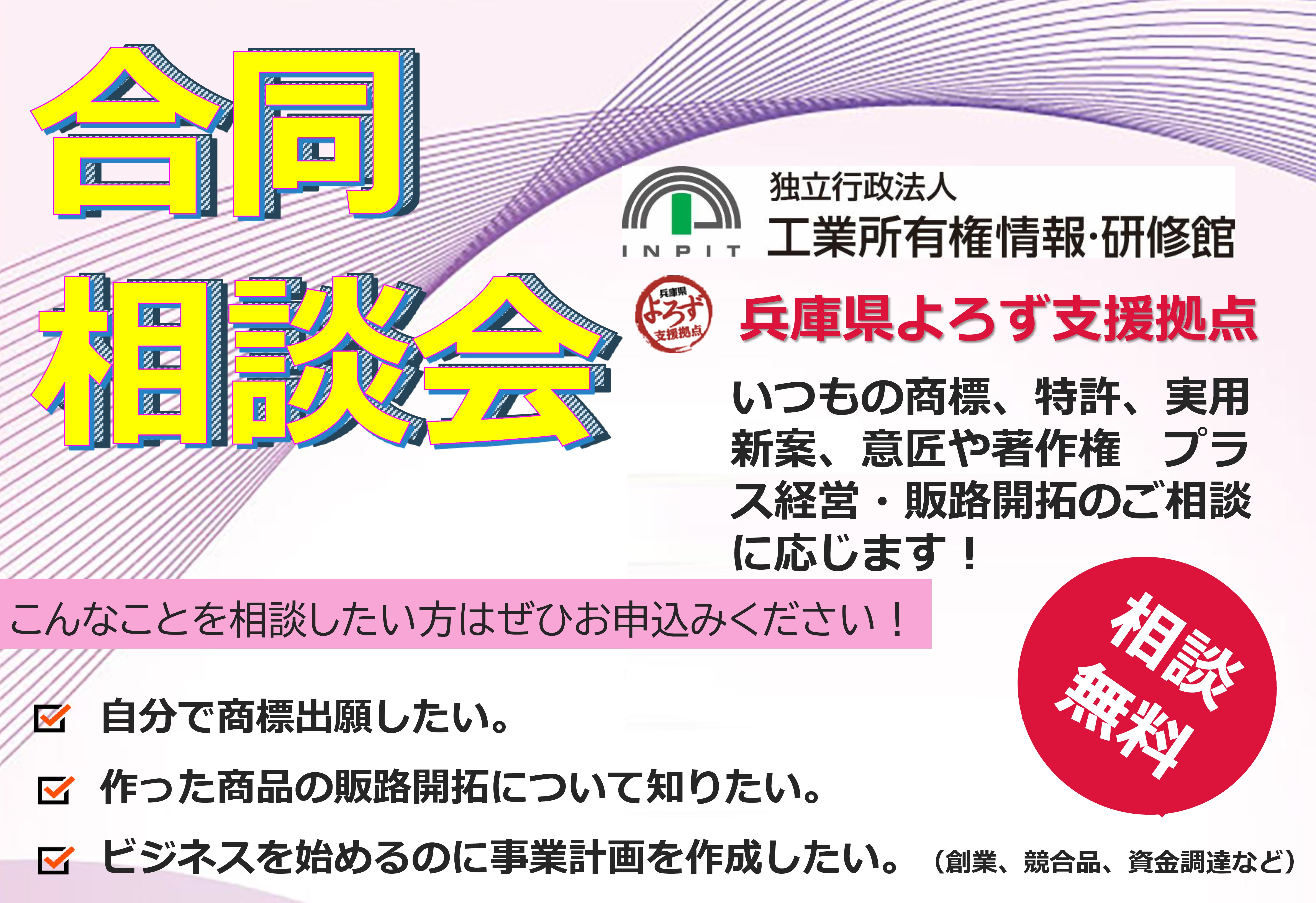 詳細はこちらから ⇒[8月/知財関係]合同相談会 IN兵庫県発明協会