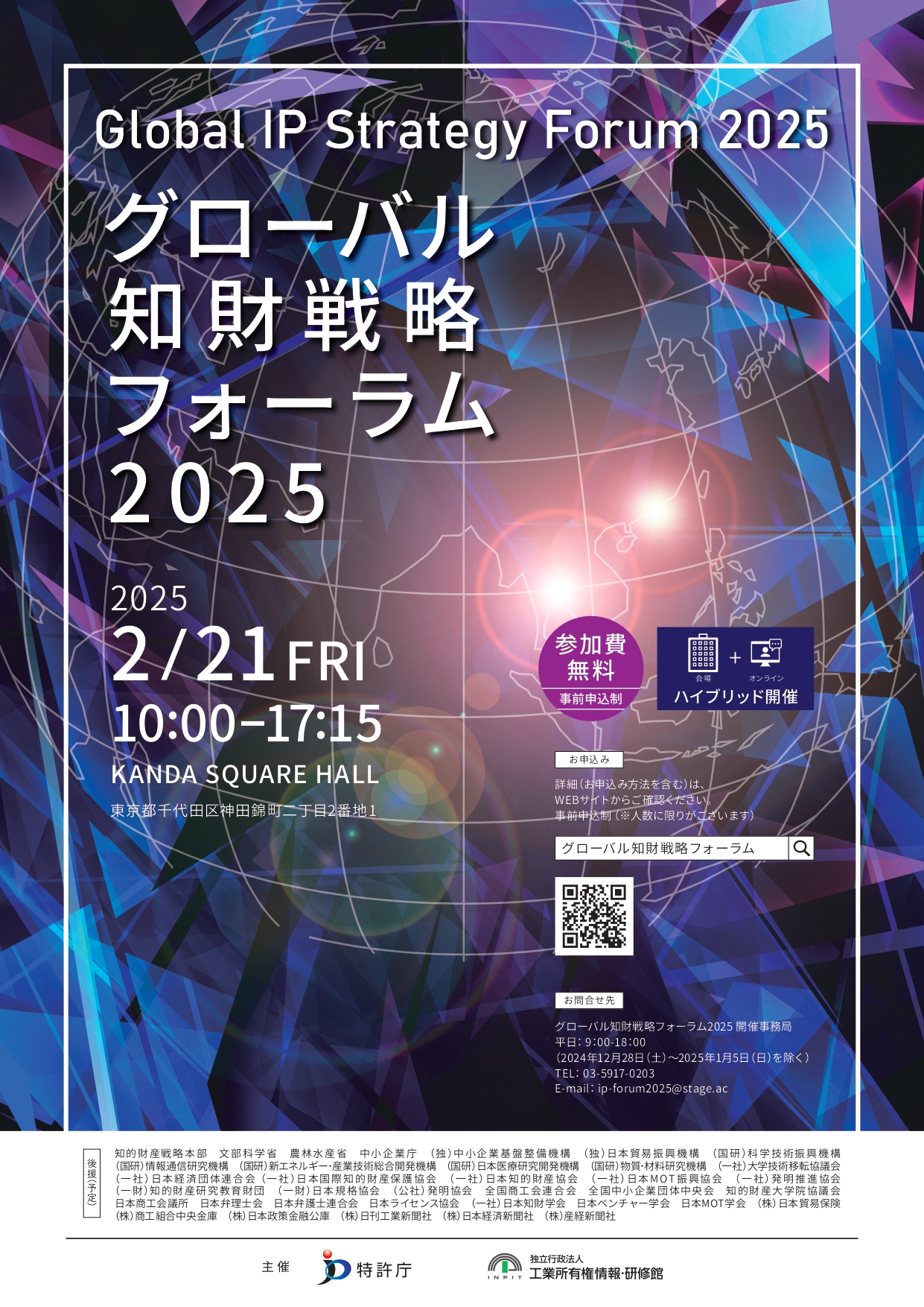 【特許庁、INPIT】☆オンライン配信あり☆2月21日「グローバル知財戦略フォーラム2025」について