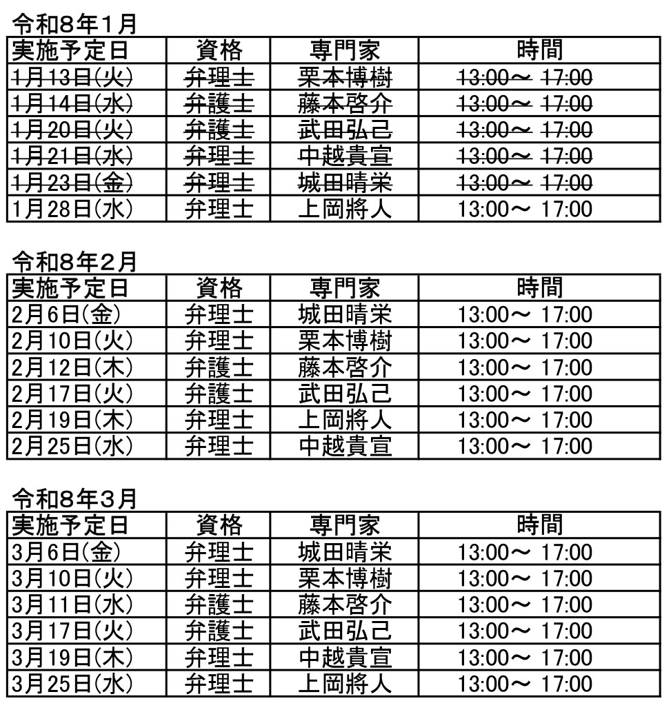 臨時窓口相談会スケジュール