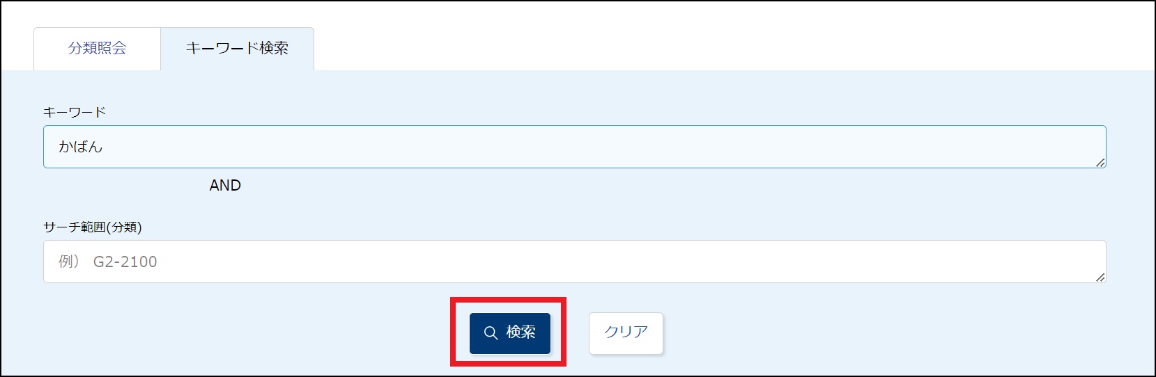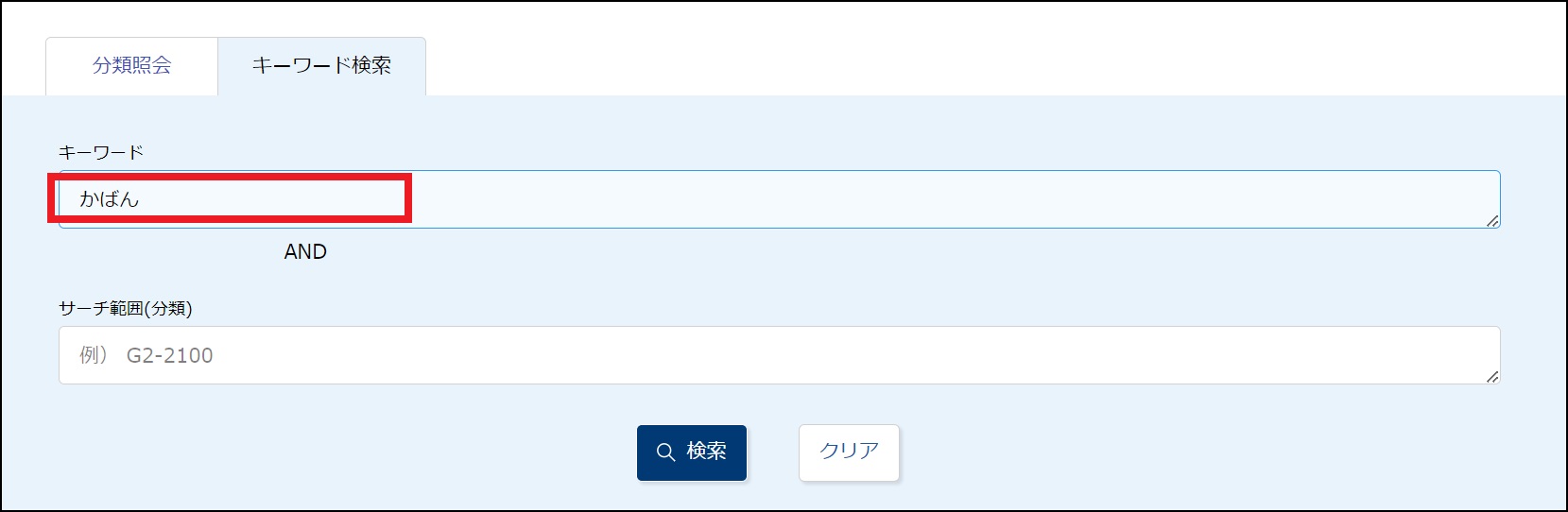 まず「かばん」の日本意匠分類の検索方法を説明します。