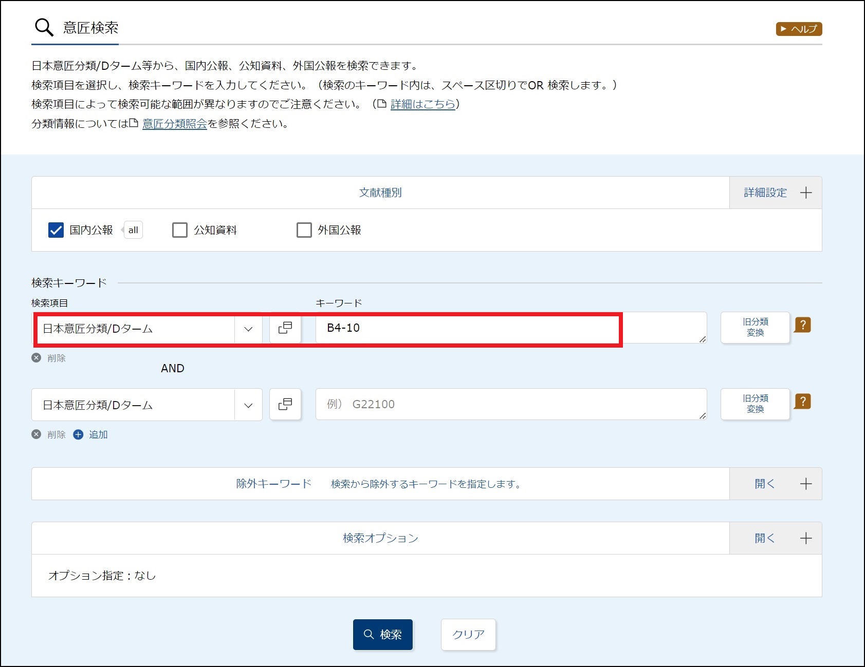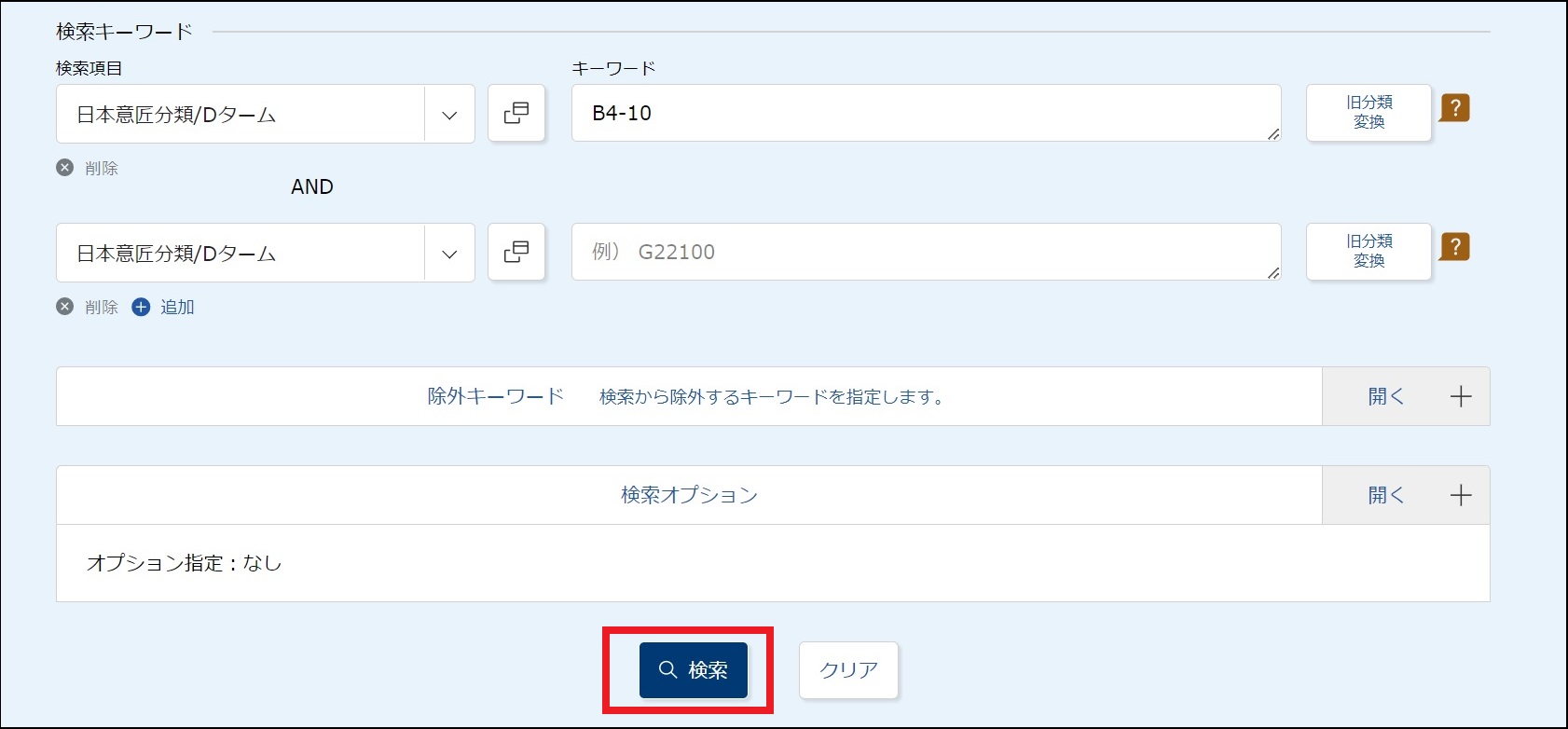 「検索項目」は「日本意匠分類/Dターム」になります。