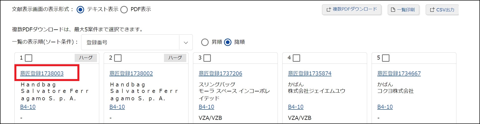 (5)「日本意匠分類」列の日本意匠分類のリンクを選択します。