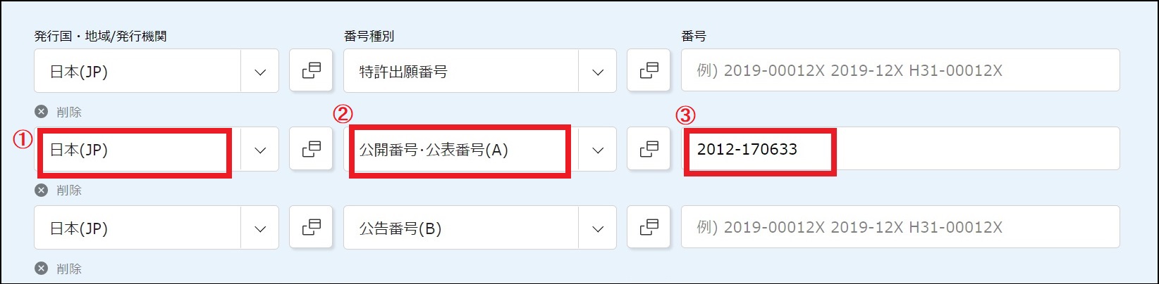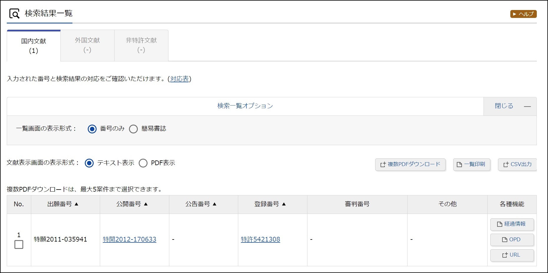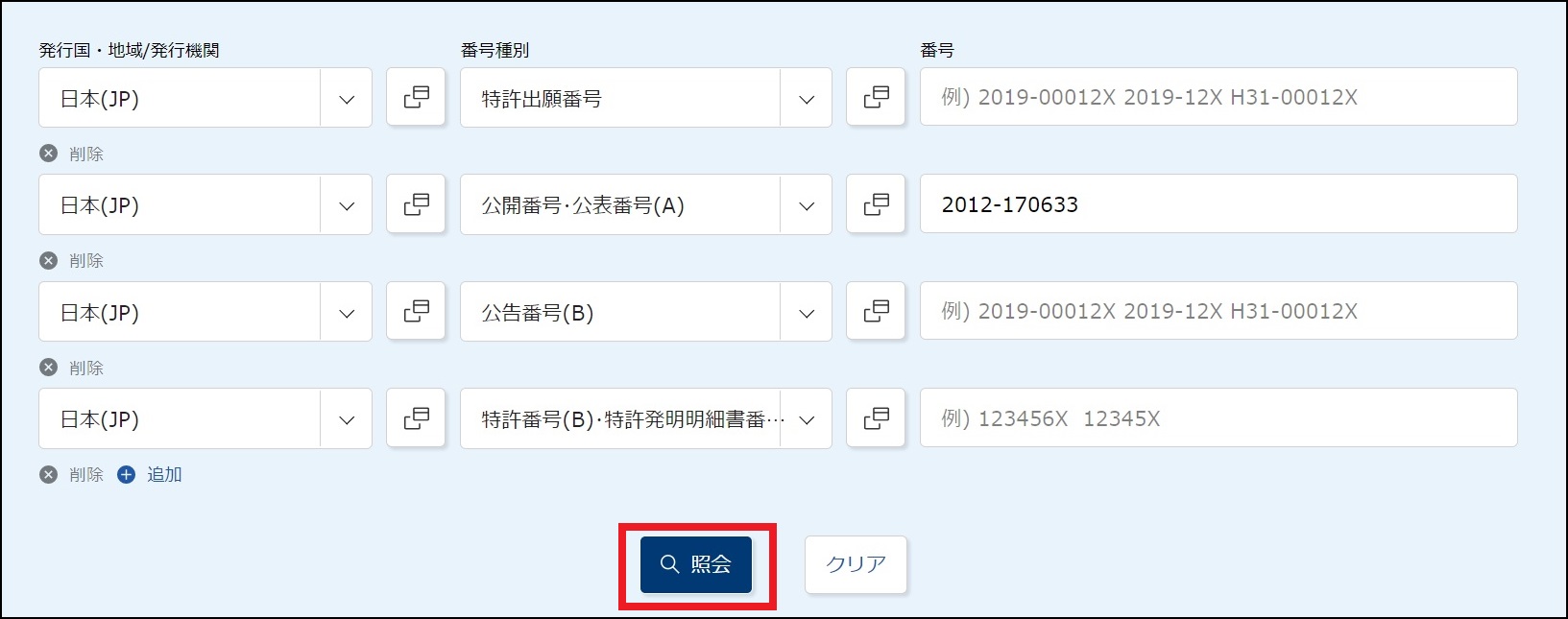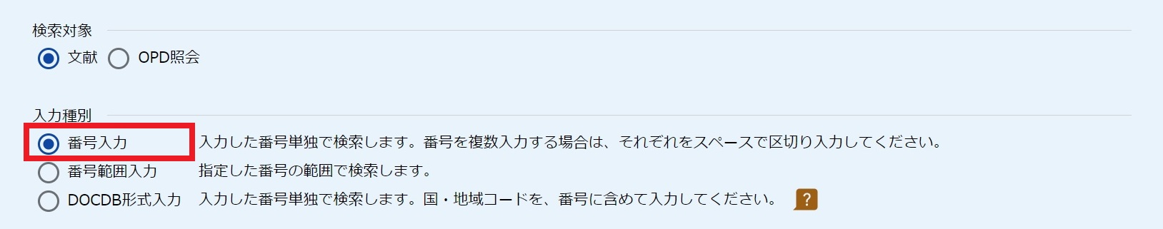 出願番号や公開番号などの番号から文献を検索する方法を説明します。