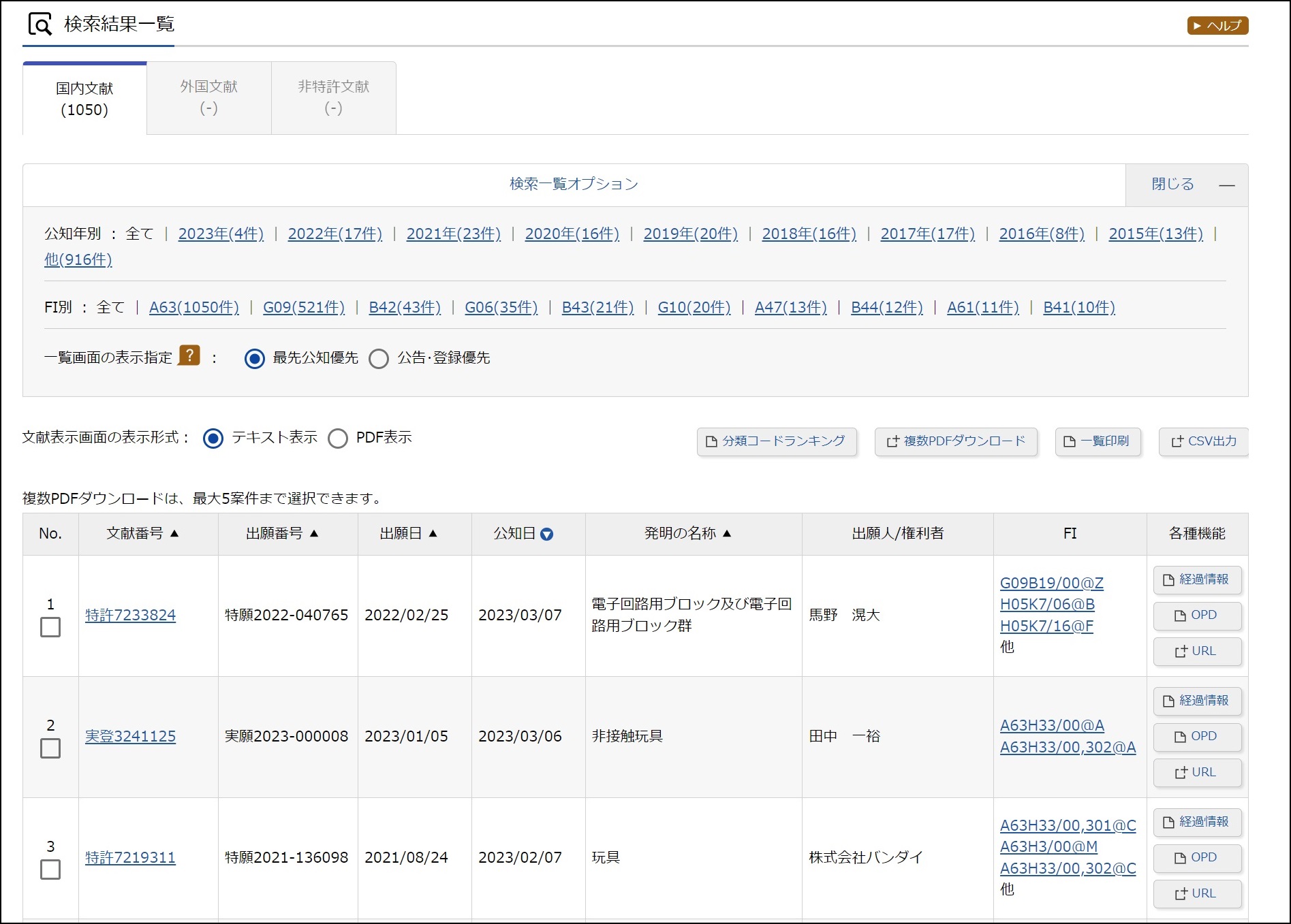 まず「知育玩具」の特許分類の検索方法を説明します。
