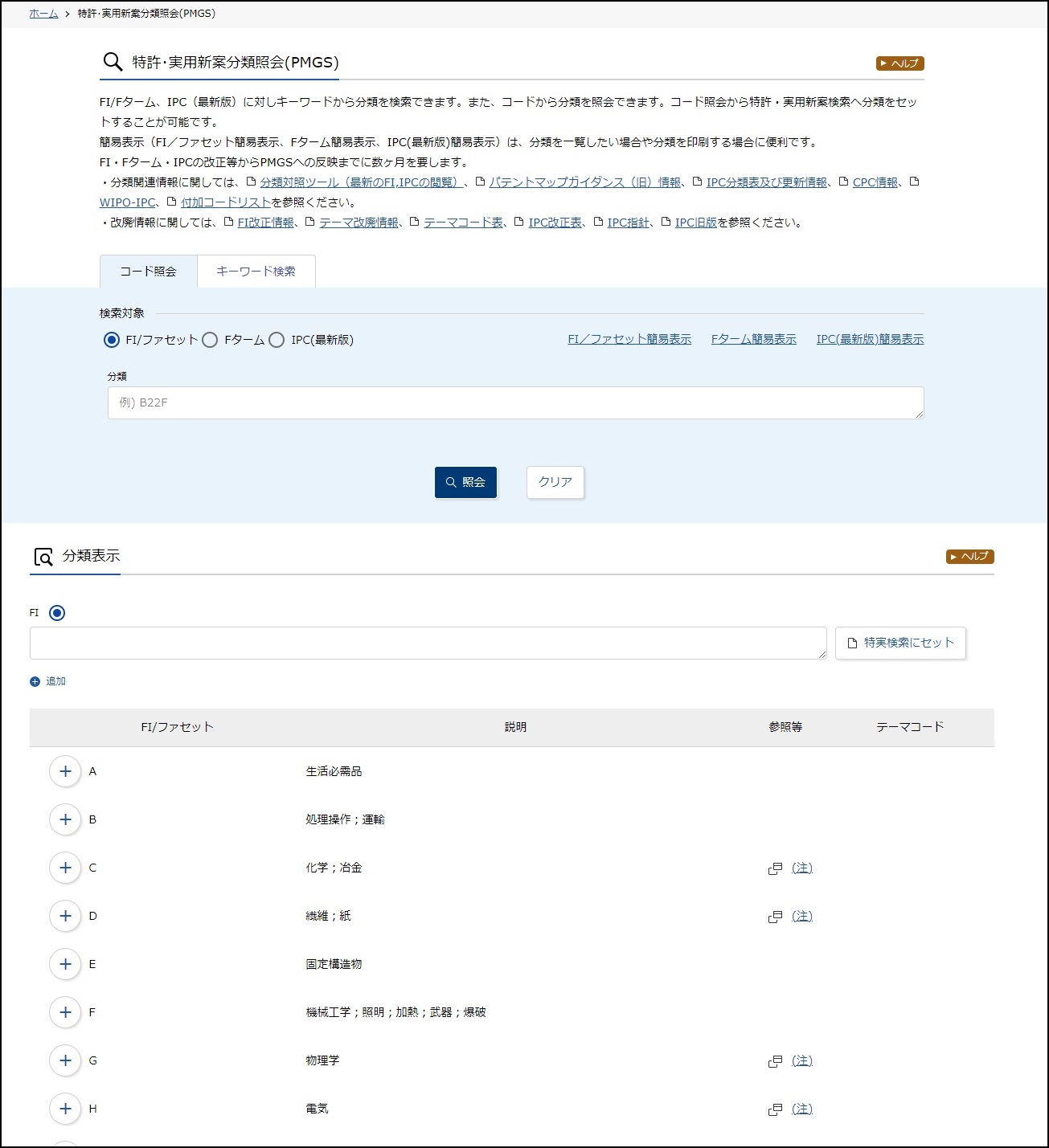 Ⅰ.特許分類を照会する【特許・実用新案分類照会(PMGS)】