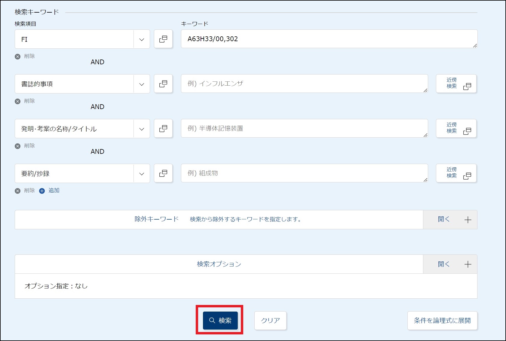 (3)検索条件を入力します。