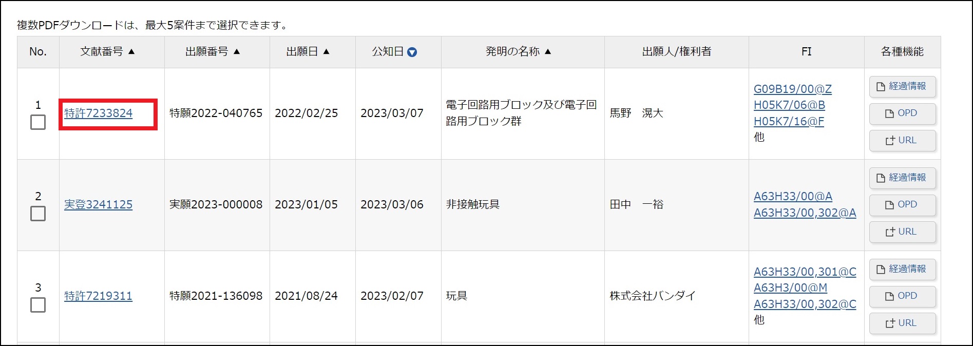Ⅱ.照会した特許分類を使って特許を検索する。
