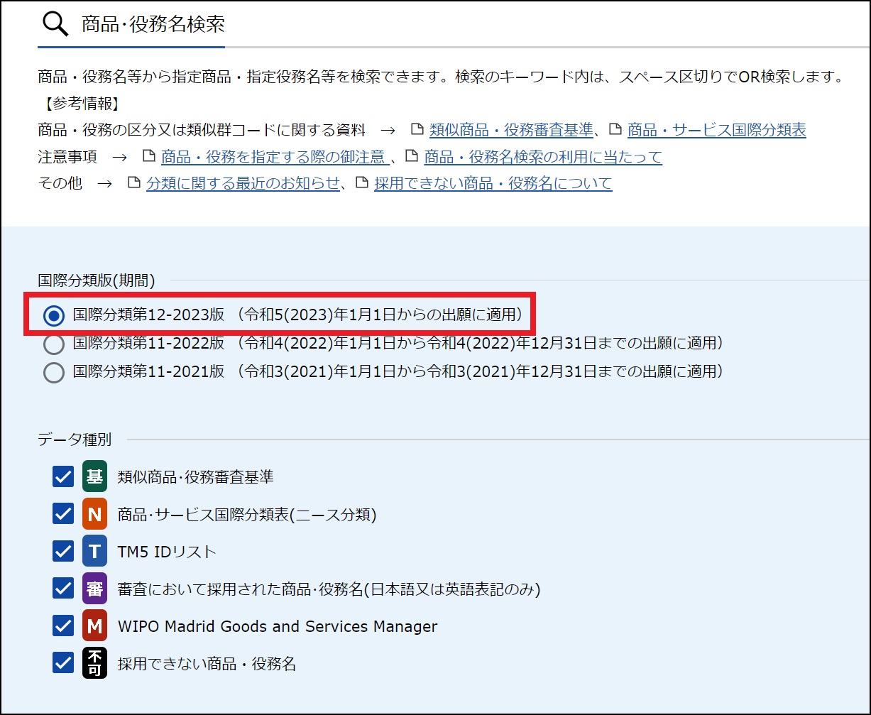 ⇒「商品・役務名検索」画面が表示されます。
