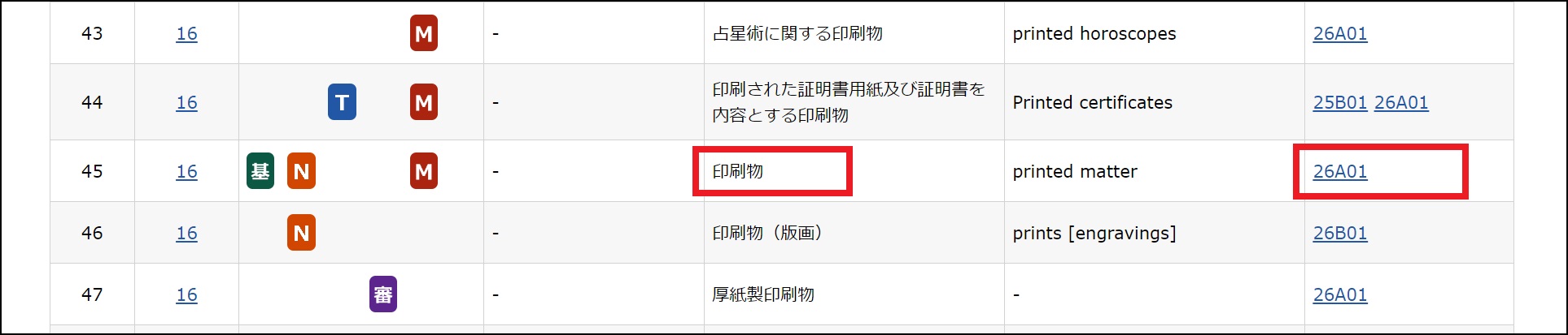 「印刷物」が含まれる商品・役務名がヒットします。