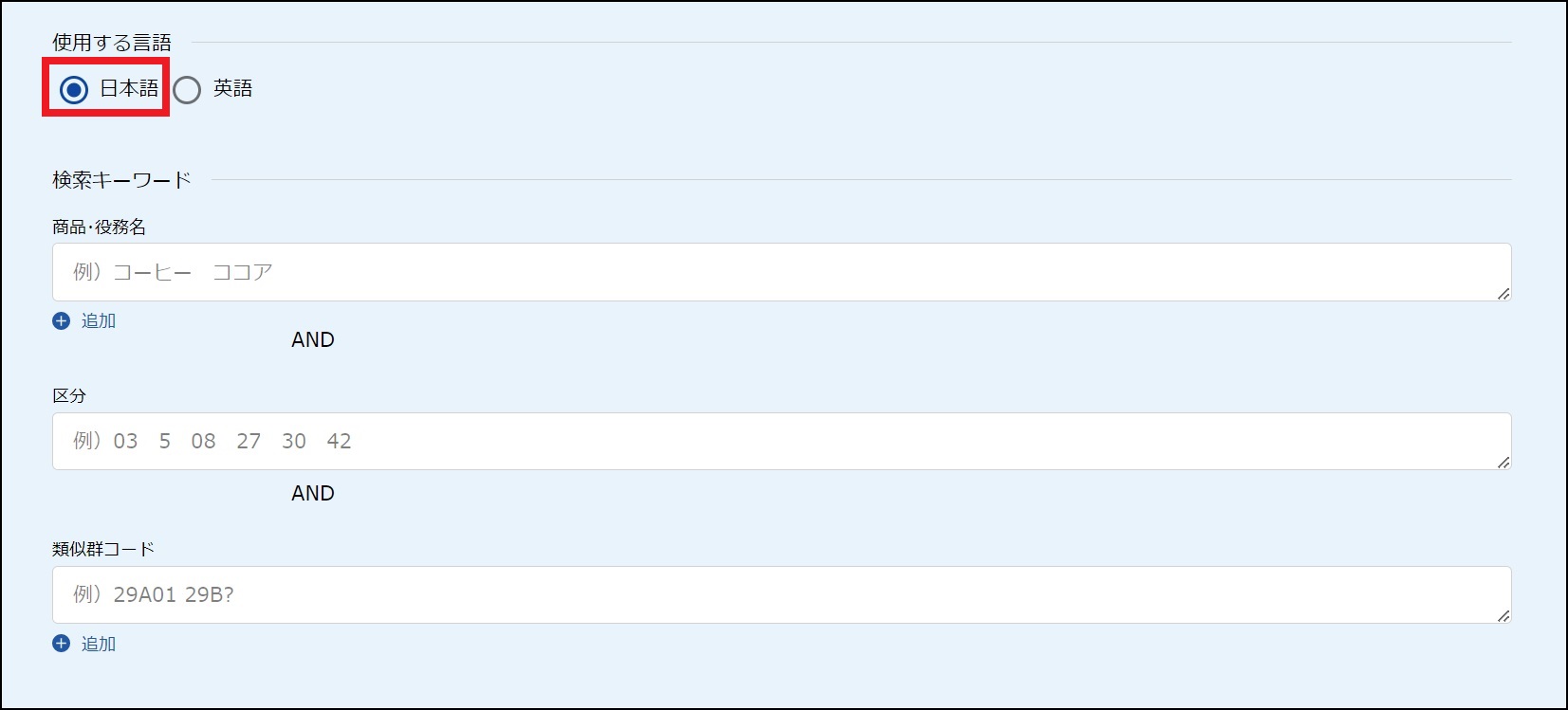 商品・役務名から類似群コードを検索する方法を説明します。