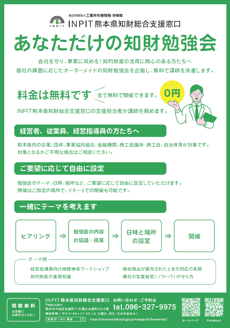 貴社の事業課題等に応じたオーダーメイドの知財勉強会を無料で開催いたします!