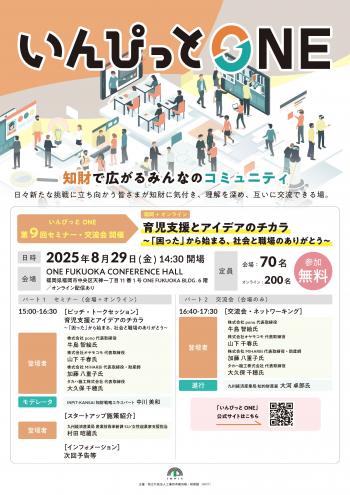 「いんぴっとONE」は、中小企業、大学、支援機関等の関係者が、知財に気付き、理解を深め、相互に交流できる場を提供いたします。
