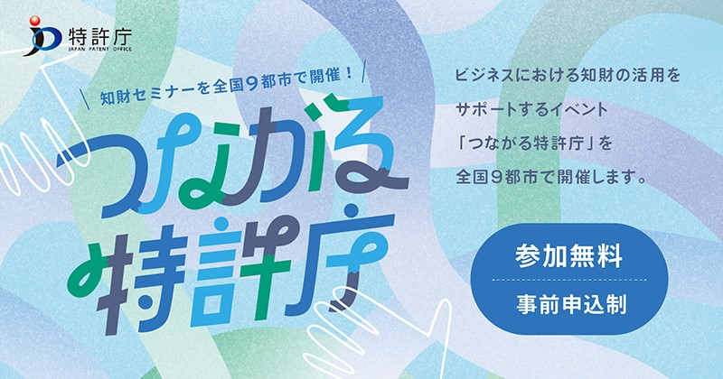 特許庁は、ビジネスにおける知的財産の活用をサポートするイベント「つながる特許庁」を全国9地域で開催します。(参加無料)