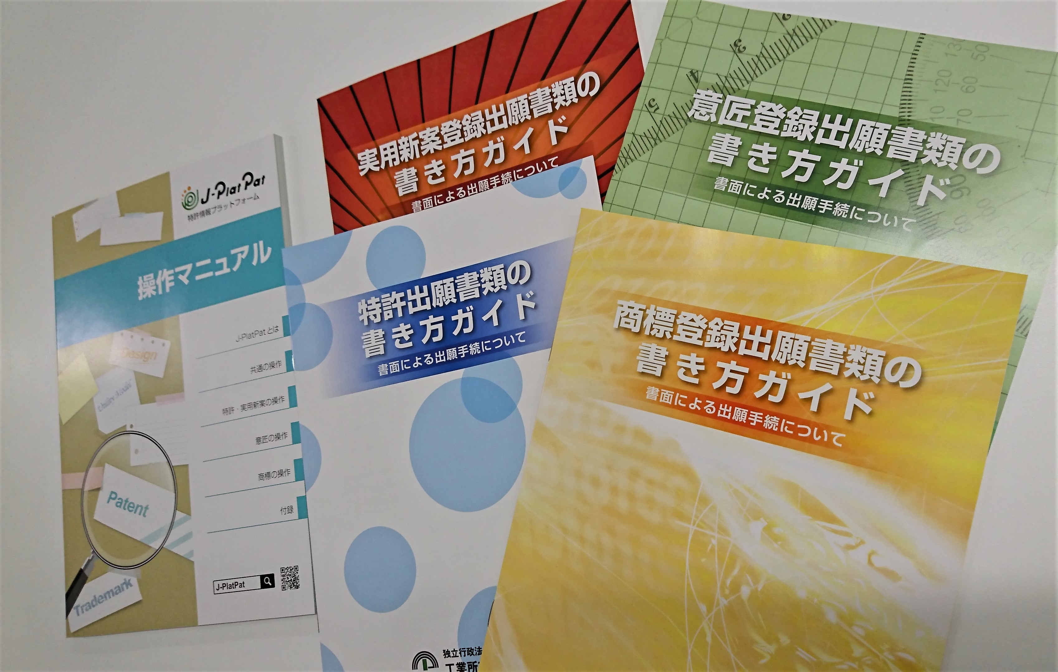 各種書き方ガイドとJ-PlatPatの操作マニュアルが窓口に届きました。