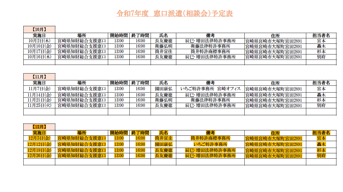 当窓口では、知財の専門家による『無料相談会』を、毎月4回開催しています