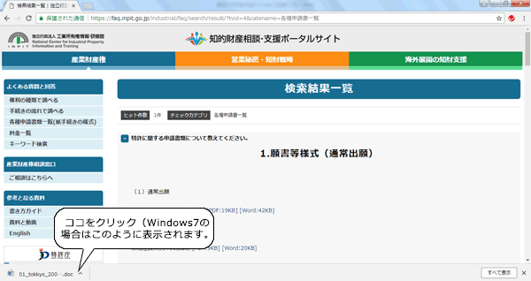 出願の様式は独立行政法人工業所有権情報・研修館の「知的財産相談・支援ポータルサイト」より、どなたでもダウンロード可能です。