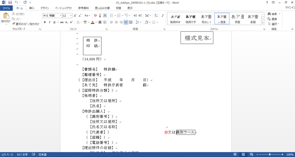 Wordが開きますので、この画面を加工し、書類を作成してください。