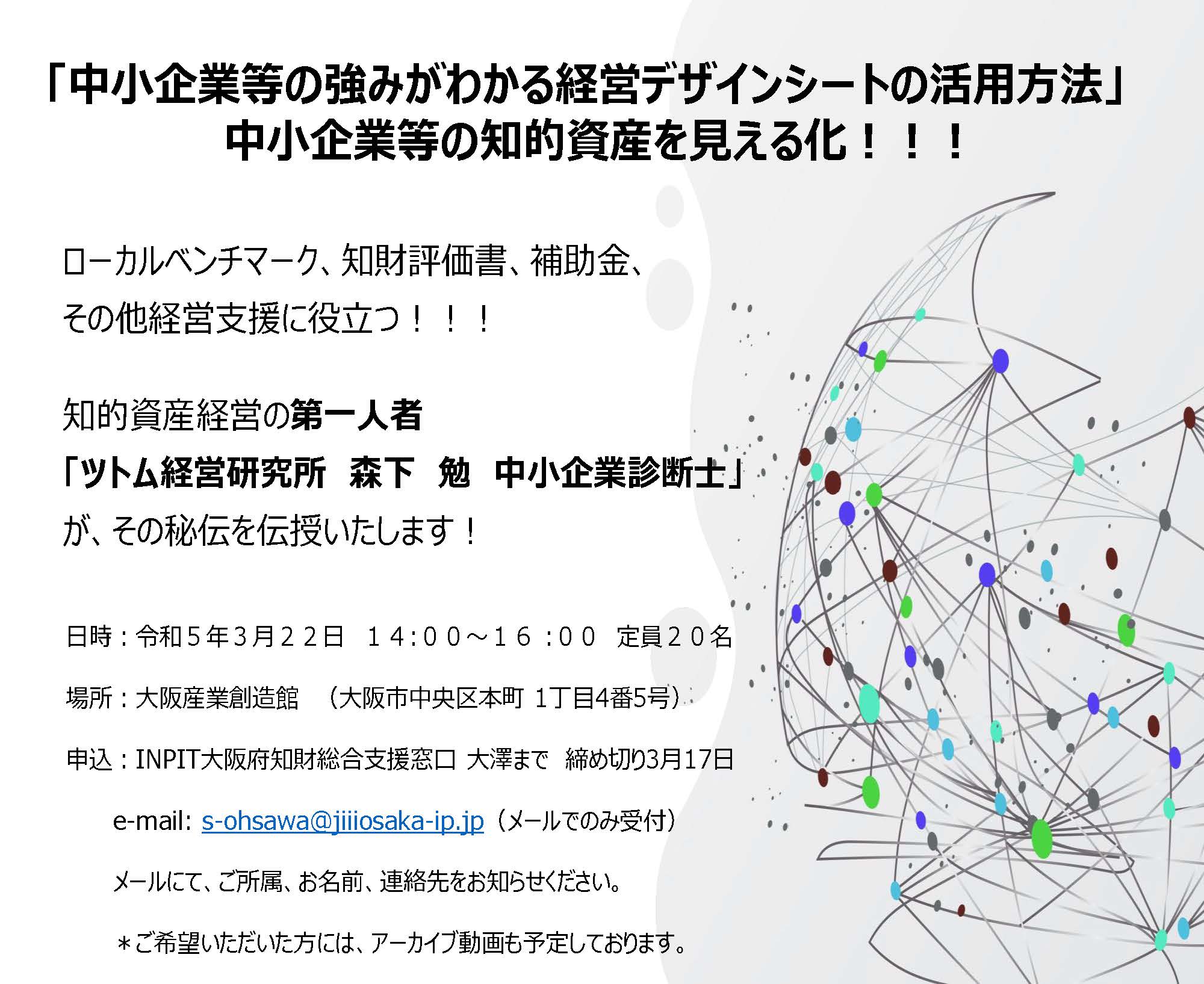 INPIT大阪府知財総合支援窓口セミナー:「中小企業等の強みがわかる経営デザインシートの活用方法」 開催!