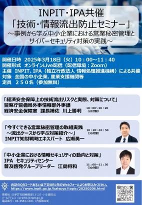 INPIT・IPA共催「技術・情報流出防止セミナー」【3月18日(火)/オンライン開催】→終了しました