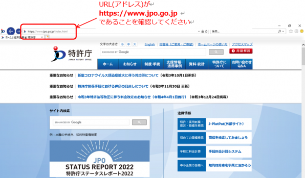 経済産業省、資源エネルギー庁、特許庁、中小企業庁の各ホームページを模倣したウェブサイトの存在が確認されています。