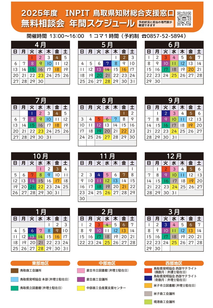開催時間と予約先電話番号は各会場共通<13:00~16:00、電話:0857-52-5894>です。