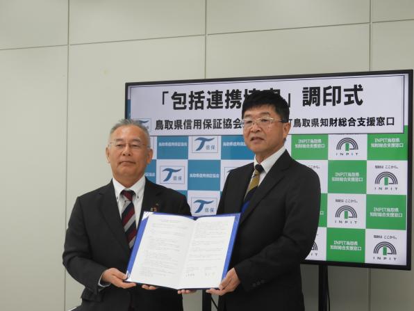 INPIT鳥取県知財総合支援窓口は令和7年11月12日、鳥取県信用保証協会様と包括的な連携を通じて地域活力の創出をめざすことを目的とした連携協定を締結しました。今後、互いの強みや専門性を活かしながら、企業における知的財産の活用促進に取り組み、地域経済の活性化に寄与すべく、共同で支援を行ってまいります。