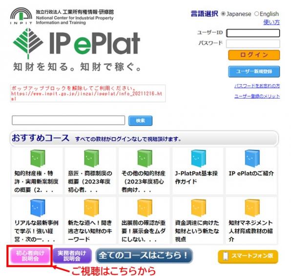 (INPITより)2023年度知的財産権制度説明会(初心者向け)オンライン配信のご案内