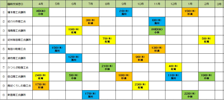 臨時窓口相談会スケジュール