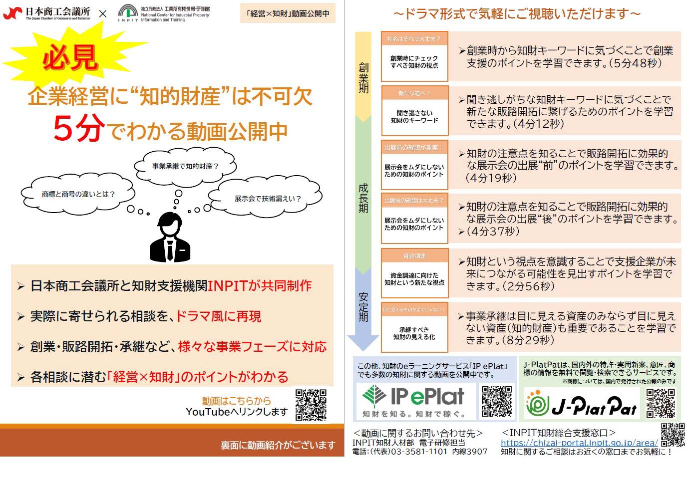 [INPIT]【IP ePlat】日本商工会議所×INPIT連携動画コンテンツリリースのお知らせ(令和6年1月29日更新) | 独立行政法人 工業所有権情報・研修館